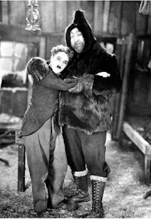 Dans un délire provoqué par la faim, Charlot fait bouillir sa chaussure et la mange. Il suce les clous comme les os d’une volaille succulente. Avale ses lacets comme des spaghettis. En regardant ce festin imaginaire, Jim, son compagnon d’infortune, hallucine. Il est soudain convaincu que Charlot est un poulet. Il saisit son fusil. Veut chasser la volaille à taille humaine pour mieux le dévorer !