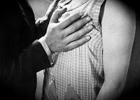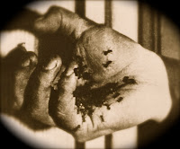 Gros plan des mains lascives sur les seins. Ceux-ci émergent de dessous la robe. On voit alors une terrible expression d’angoisse, presque mortelle, se refléter sur les traits du personnage. Une bave sanguinolente lui coule sur la poitrine découverte de la jeune fille.